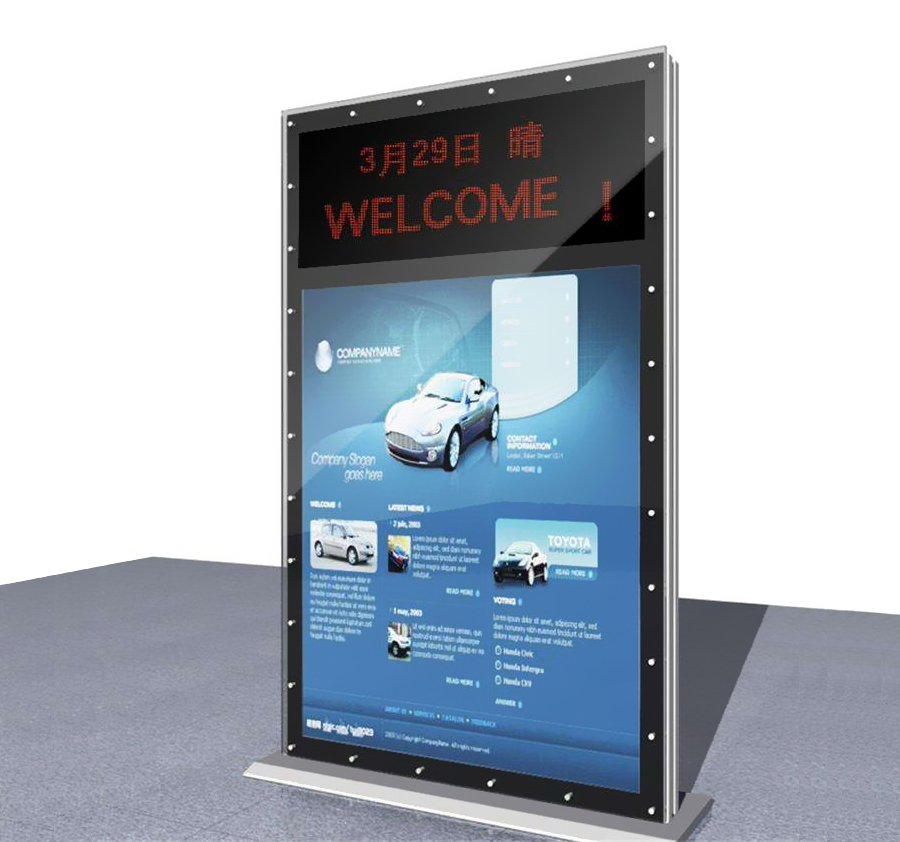 5、長時性:滾動燈箱廣告存在時間相對較長,采用不銹鋼結構,寬大的鋼化玻璃造型現代同時配以EEFL燈光及同步滾動效果,其優勢要強于傳統廣告形式。