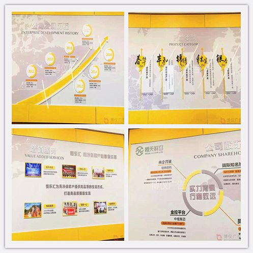 北京恒天明澤基金有限公司是北京上市集團恒天財富的武漢下屬公司,主營業務是財富管理,其中包括取款、投資、貸款等服務。“隔省如隔山”,公司在武漢剛成立不久,企業的品牌價值在現有的客戶心中的分量還不夠重,所以客戶無法選擇更大的業務,客戶裂變量和轉化率也一直沒有太大的變化,這也成為了恒天財富當下最關心的問題了。為了解決這個問題,內部討論后提出首先解決企業內部品牌文化軟裝的問題,這是為品牌建設打下基礎,于是負責人通過網絡渠道找到了專業制作企業文化墻的廠家。